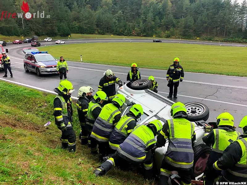 „Beim Eintreffen unseres technischen Zuges konnte festgestellt werden, dass sich aus noch unbekannter Ursache ein Pkw überschlagen hat, am Dach zu liegen kam und die Verletzte noch im Fahrzeug fest gesessen sei, „, berichtet Einsatzleiter HBI Harald Geissler, Kommandant der Hauptfeuerwache Villach.
