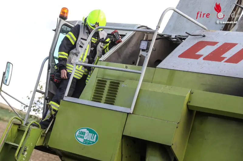 Im Motorraum des Mähdreschers ist es aus bisher unbekannter Ursache zu einem Brand gekommen. Der Lenker der Erntemaschine konnte den Brand mit Mineralwasser soweit ablöschen, dass die Feuerwehr nur noch Nachlöscharbeiten durchführen musste. Mittels Wärmebildkamera wurde der betroffene Bereich kontrolliert.
