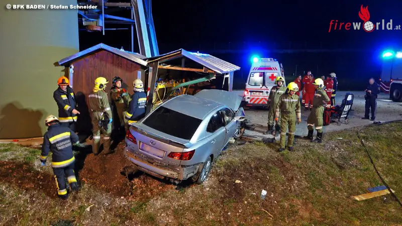 Kurz vor Mitternacht des 4. Oktober 2019 verunfallte der Lenker eines Lexus nahe der Bezirksgrenze. Den Unfallspuren zufolge kam der Pkw aus Richtung Sollenau kommend, als der Lenker die Herrschaft über das Fahrzeug verlor und von der Fahrbahn in den Straßengraben abkam. Infolge prallte der Pkw gegen die Böschung und schlug mit voller Wucht in eine Holzhütte der Straßenmeisterei ein bis dieser dort zum Stillstand kam. Der Lenker wurde dabei unbestimmten Grades verletzt und im deformierten Unfallwagen eingeschlossen.