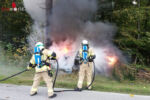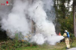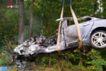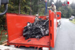 Das gelöschte Fahrzeug wurde dann mit Hilfe eines Baggers in den Container gehoben und unter Begleitung der örtlichen Feuerwehren in eine Schottergrube gebracht.