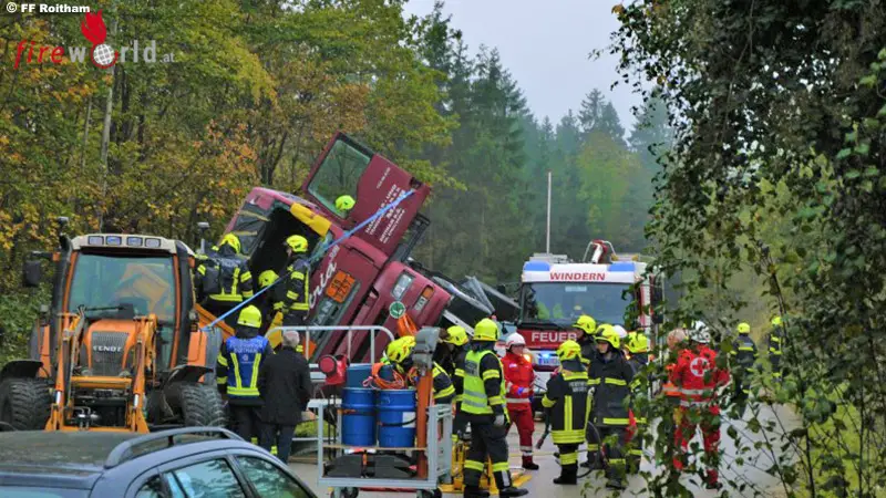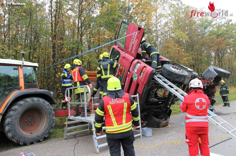Oö: Schwere Lkw-Pkw-Traktor-Kollision als Übungsthema in Roitham