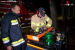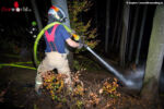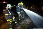 Mit Wärmebildkameras wurden verbliebene Glutnester aufgespürt und abgelöscht. Um ausreichend Wasser an die entlegene Einsatzstelle im Wald bringen zu können, richtete die Feuerwehr einen sogenannten Pendelverkehr mit Tanklöschfahrzeugen ein.