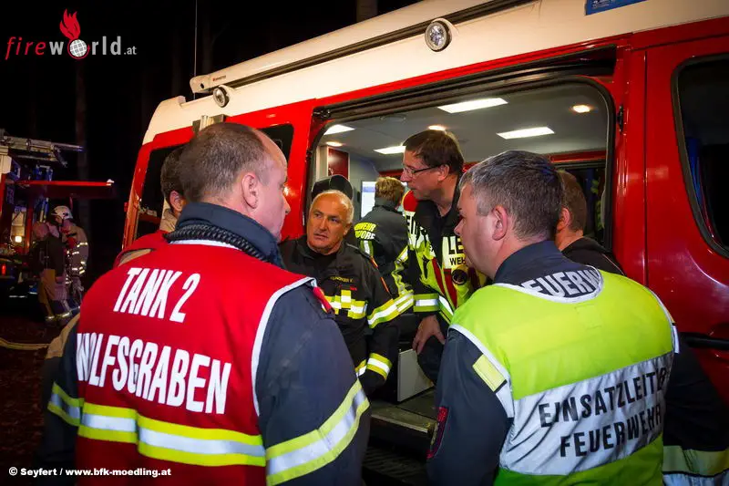 Daraufhin wurden mehrere Feuerwehren aus zwei Bezirken alarmiert und begaben sich auf die Suche nach dem Feuer. Im Einsatzgebiet der FF Sulz im Wienerwald (Bezirk Mödling) fand man schließlich einen Waldbrand in schwer zugänglichem Gelände, der insgesamt ca. 1,5 Hektar umfasste. 130 Mitglieder von sieben Feuerwehren aus den Bezirken Mödling und St. Pölten (Sulz i. Ww., Dornbach, Breitenfurt, Laab im Walde, Wolfsgraben, Purkersdorf und Tullnerbach) bekämpften den Brand mit sechs Rohren.