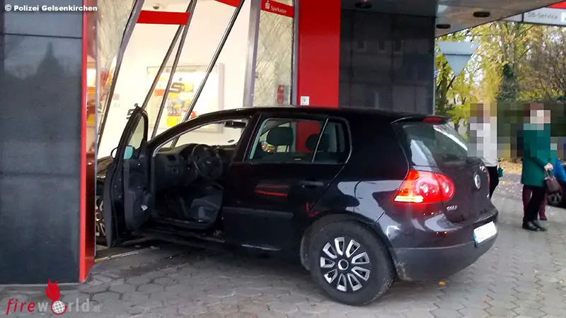 BUER (DEUTSCHLAND): Am Morgen des 26. November 2019 wurde die Polizei um 8.14 Uhr zur Filiale einer Sparkasse auf der Horster Straße in Buer gerufen. Passanten hatten sich gemeldet, weil ein Auto frontal in den verglasten Eingangsbereich der Sparkasse gefahren war.