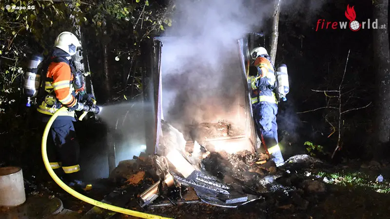 SAX (SCHWEIZ): Kurz nach 05.30 Uhr hat die Kantonale Notrufzentrale St. Gallen am 28. November 2019 die Meldung von einem Brand an der Rütigass erhalten. Wie sich herausstellte hat sich ein Räucherhäuschen entzündet.