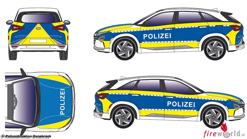 OSNABRÜCK (DEUTSCHLAND): Die Polizeidirektion Osnabrück geht bei ihrem vor drei Jahren eingeschlagenen Weg, die Mobilität in den eigenen Reihen umweltfreundlicher und nachhaltiger zu gestalten, nun einen ganz neuen, innovativen Weg: Als erste Polizeibehörde in Deutschland wird in Osnabrück ein Streifenwagen der Marke Hyundai mit reiner Brennstoffzellentechnik unterwegs sein.