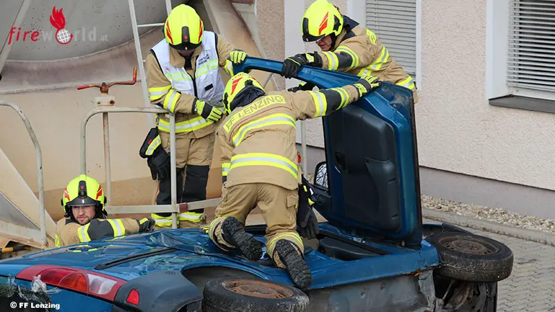 Oö: Gefahrgut-Übung "Pkw-Eisenbahn" in Lenzing