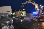 An der Einsatzstelle bot sich folgende Lage: Ein Pkw und ein Kleintransporter stießen auf der ehemaligen B137 (jetzt B137A) Höhe Rainding frontal zusammen. Die Fahrerin des Autos konnte noch rechtzeitig aus dem Fahrzeug gerettet werden, bevor der Brand den Fahrgastraum erreichte. Dennoch erlag die Frau noch an der Unfallstelle ihren Verletzungen. Die Insassen des Kleintransporters wurden mit Verletzungen unbestimmten Grades ins Krankenhaus eingeliefert. Für die Dauer des Einsatzes und die damit verbundenen Aufräumarbeiten war die Bundesstraße rund 3 Stunden gesperrt.