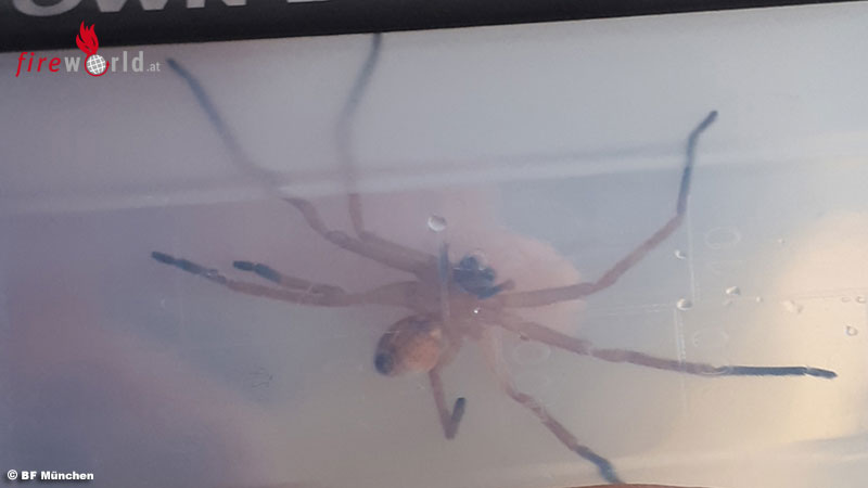 MÜNCHEN (BAYERN): Am Dienstagmittag, 10. Dezember 2019, erreichte ein ungewöhnlicher Notruf die Leitstelle München. Ein Mitarbeiter eines Supermarktes entdeckte beim Entpacken von Bananen eine exotische Spinne unter der Verpackungsfolie und alarmierte daraufhin sofort die Feuerwehr.