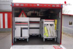 Der Lkw mit Kofferaufbau hat nur mehr zwei fix verbaute Geräteräume, welche mittels Rollläden geöffnet werden können. Im hinteren Bereich befindet sich eine Ladefläche, auf der insgesamt sechs Rollcontainer Platz finden. Diese können modular und dem jeweiligen Einsatztyp entsprechend mittels hydraulischer Ladebordwand verladen werden. Im Fahrzeuginneren finden insgesamt neun Personen Platz. Entgegen der Fahrtrichtung sind auch drei Atemschutzgeräte verbaut. Zwischen Fahrer und Beifahrersitz wurde auch ein Zentraldisplay verbaut, von dem aus die Fahrzeugbeleuchtung sowie weitere Funktionen geschalten werden können. Ebenso ist eine Gegensprechanlage mit Kamera verbaut, sodass der Fahrer mit der Mannschaft auf der Ladefläche Kontakt aufnehmen kann. Die Ladebordwand kann auch halbiert, werden um von den Schlauchcontainer heraus sofort die Schlauchleitungen legen zu können. Hierzu gibt es auch noch eine Vorrichtung, um die Ladebordwand nicht zu beschädigen. Eine vierteilige Steckleiter ist im Fahrzeugdach zu finden.