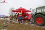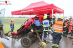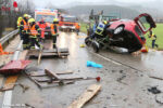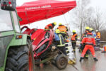 Bayern: 5 Verletzte → Pkw fährt auf Traktor-Gespann auf und bleibt schräg auf zerstörtem Anhänger hängen