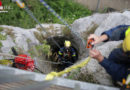 Die Leitstelle Traunstein schickte die Freiwilligen Feuerwehren Ainring und Piding und das Rote Kreuz mit zwei Rettungswagen aus Bad Reichenhall und Berchtesgaden, dem Freilassinger Notarzt, dem Einsatzleiter Rettungsdienst und dem Notfallkrankenwagen der BRK-Bereitschaft Ainring zur Unfallstelle. Die Frau und der Mann waren im Focus eingeschlossen, wobei die Feuerwehr zur schonenden und sicheren Rettung unter anderem das schräg hängende Fahrzeug mit einem Kantholz-Unterbau und einem Abstütz-System sicherte, die Fahrertüre mit dem hydraulischen Rettungssatz entfernte und eine Rettungsplattform aufstellte, damit die Einsatzkräfte am schräg hängenden Fahrzeug in eineinhalb Metern Höhe sicher arbeiten können.