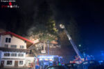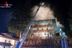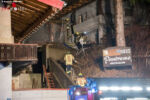 Anwohner hatten bereits kurz nach 22 Uhr Uhr Rauch im Freien vor dem derzeit unbewohnten Gebäude bemerkt und einen Notruf abgesetzt. Die Feuerwehr stellte dann einen Zimmer-Brand im Erdgeschoß mit starker Rauch-Ausbreitung im Gebäude fest, erkundete unter Atemschutz den verschachtelten, unübersichtlichen und schwer zugänglichen Komplex in Hang-Lage, wo seit längerer Zeit Umbau-Arbeiten stattfinden und machte sich auf die Suche nach dem Brandherd, wobei sich das Feuer offensichtlich bereits vom Erdgeschoss über mehrere Stockwerke ausgebreitet hatte. Der Einsatzleiter forderte deshalb rasch weitere Feuerwehr-Einheiten nach.