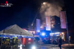 Ein Feuerwehrmann war über eine Treppe abgestürzt, wobei er aber nach erster Einschätzung des Roten Kreuzes Glück im Unglück hatte und leicht verletzt davonkam.