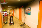 Das Persdonal war wegen einer Einlieferung einer agressive Person beschäftigt, als ein anderer Patient im Badezimmer einen Wäschewagen anzündete. Durch die starke Verrauchung wurde der Rauchmelder ausgelöst. Der brennende Wagen konnte vom Personal gelöscht und ins Freie geschoben werden.