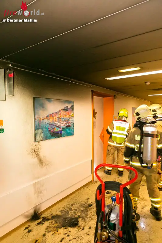 Die BTF LKH Rankweil und die FW Rankweil konnten noch Nachlöscharbeiten durchführen, kontrollierten mit der Wärmebildkamera und sicherten die Brandstelle für die Polizei ab. Das Pflegepersonal wurde vorsorglich wegen Verdacht auf Rauchgasvergiftung ins LKH Feldkirch eingeliefert. Zehn Patienten von der Station wurden auf andere Stationen ueberstellt.