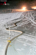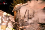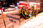 Die ausgerückte Feuerwehr bentöigte aufgrund der widrigen Bedingungen etwa eine Stunde, um die Löschleitung aufzubauen bzw. durch den Schnee zu verlegen. Dennoch geland es, den angrenzenden Lagerschuppen zu retten. Das Gebäude selbst ist nicht mehr bewohnbar.