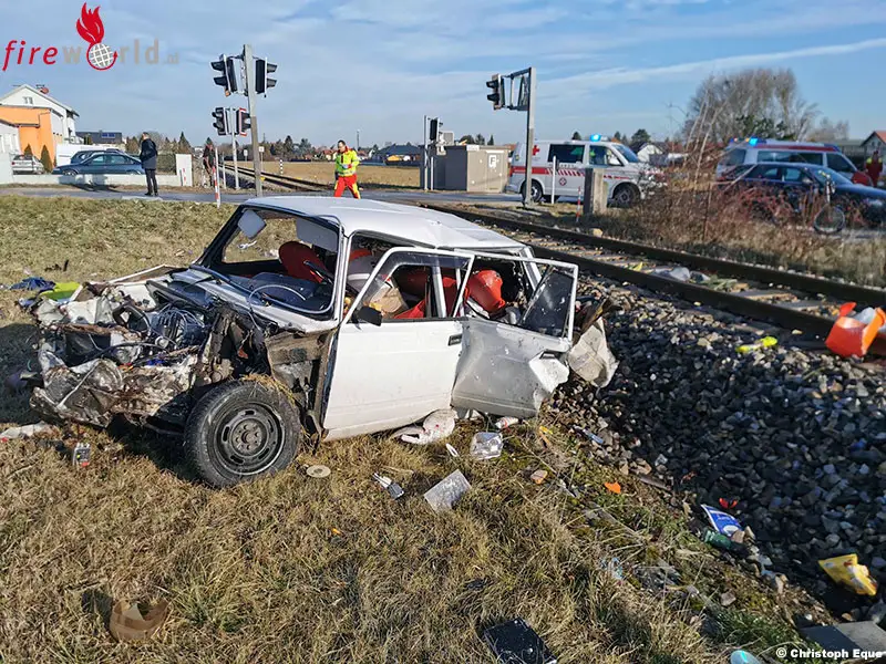 SANKT PÖLTEN-SANKT GEORGEN (NÖ): Am Dienstag, den 7. Jänner 2020, wurde die Freiwillige Feuerwehr St. Pölten-St. Georgen zum ersten Einsatz des neuen Jahres gerufen. Aus unbekannter Ursache kam es auf der Ochsenburgerstraße zu einem Zusammenstoß zwischen einen Triebwagen und einem Pkw.