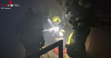 Oö: Höhenretter üben im 12 m Stiegenraum eines Mehrparteienhauses