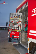 Der Aufbau des LFA-L verfügt über zwei Geräteräume, in denen Stromerzeuger, Beleuchtung und Schanzwerkzeug sowie andererseits die ebenfalls neu angeschaffte Tragkraftspritze FOX4 und sämtliche wasserführende Armaturen und Schlauchmaterial untergebracht sind.