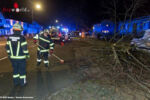 Auch die ausgelaufenen Betriebsmittel wurden durch die Feuerwehreinsatzkräfte gebunden. Der auf der Nebenfahrbahn liegende gefällte Baum musste mittels Motorkettensäge zerteilt werden. Die zwischenzeitlich eingetroffenen Mitarbeiter des Energieversorger begann mit den notwendigen Sicherungs- und Stromumschaltarbeiten.