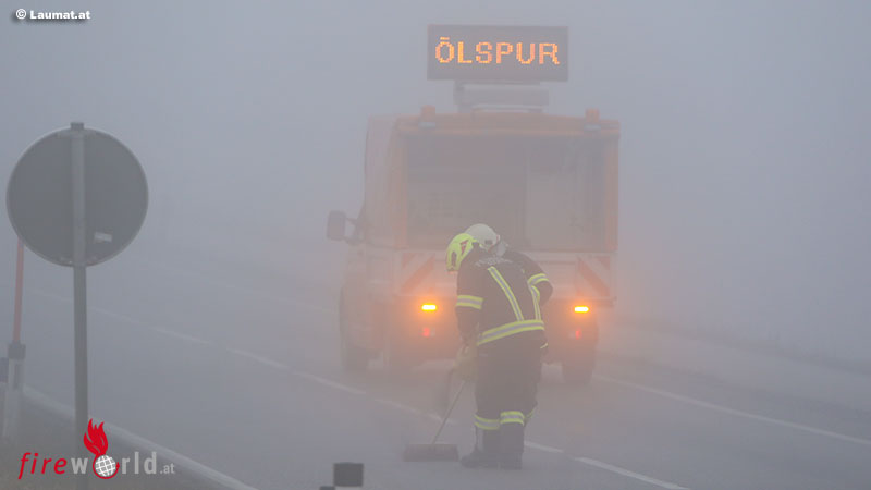 Die Ölspur erstreckte sich auf einer Länge von rund sechs Kilometern von Gallspach bis ins Gemeindegebiet von Meggenhofen. Größtenteils auf der starkbefahrenen Gallspacher Straße musste die rutschige Fahrbahn mit Bindemittel abgestreut werden. Erschwerend kam der dichte Nebel dazu, teilweise mussten die Einsatzkräfte bei Sichtweiten der Verkehrsteilnehmer unter 50 Meter arbeiten.