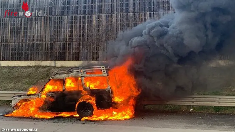 Nö: Vollbrand eines Geländewagens auf der A 2 bei Wr. Neudorf