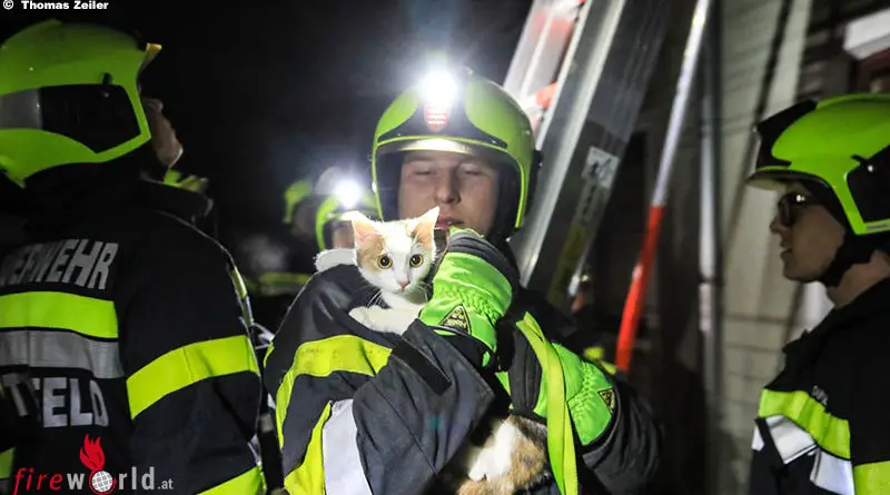 KNITTELFELD (STMK): Am Abend des 3. Februar 2020 rückte die Freiw. Feuerwehr Knittelfeld zu einer Tierrettung aus. Eine etwa ein Jahr alte Katze konnte nicht mehr von alleine von Dach eines Mehrparteinwohnhauses herunterklettern.