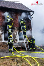 „Wir – die vier Gemeindefeuerwehren – sind heute in der Früh um kurz vor sechs Uhr zu einem Brand landwirtschaftlichens Objekt alarmiert worden. Wie wir angekommen sind, hat es dann auch gehießen, dass eine Person vermisst wurde. Der Wohntrakt ist in Vollbrand gestanden. Wir haben dann sofort mit einem Innenangriff angefangen, von außen Löscharbeiten und der Atemschutztrupp hat die Person gesucht. Es handelt sich hier um ein älteres Sacherl, der Wohnbereich, das Wohnzimmer ist in Vollbrand gestanden. Die Wasserversorgung war ein kleines Problem. Wir haben über einen Kilometer Schlauchleitung für die Zubringerleitung verlegt. Wir haben nach dem Brand dann die Decke gestützt, da es sich um eine Dübeltramdecke – das ist ein Holzbalkensystem und durch den Brand ist diese sehr in Mitleidenschaft gezogen worden.