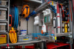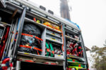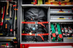In der Mannschaftskabine befinden sich drei Atemschutzgeräte. Die Ausrüstung für den Atemschutztrupp wie Funkgeräte, Feuerwehrgurte, Wärmebildkamera, Führungsleine und Handscheinwerfer ist im „Actiontower“ (=Werkzeugturm) untergebracht.