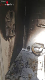 Die weitere Lageerkundung unter Atemschutz ergab, im Bereich einer der WC Kabinen wurde eine große Klopapierrolle angezündet und der komplette Papier-Spender aus Kunststoff war gänzlich abgebrannt. Dabei entstanden erhebliche Brandgase die sämtliche Räumlichkeiten des Burschen WC auf Null-Sicht verrauchten. Durch die Brandgase waren auch andere Einrichtungsgegenstände in Mitleidenschaft gezogen worden.