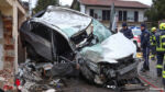 Oö: Pkw kracht in Wallern gegen Garage → Person schwer eingeklemmt