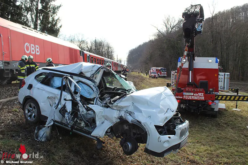 Das schwer beschädigte Fahrzeug wurde vom Puffer der Lok erfasst und dutzende Meter mitgeschleift. Die Südbahnstrecke wurde umgehend gesperrt, um weder Einsatzkräfte noch sonstige im Einsatzbereich befindliche Personen zu gefährden.