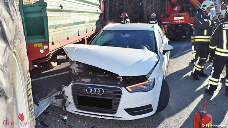 Verletzt wurde bei dem Crash glücklicherweise niemand. Die FF Pinkafeld sicherte die Unfallstelle ab, stellte den Brandschutz sicher und führte mittels WLF die Fahrzeugbergung durch.