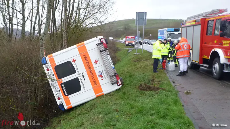 D: Rettungsfahrzeug stürzt bei Einsatzfahrt über Böschung