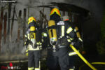Eine Wagenhütte stand beim Eintreffen der Feuerwehren in Vollbrand. Unter schwerem Atemschutz wurde sofort mit den Löscharbeiten begonnen, um ein Übergreifen auf die nahestehenden Nachbarobjekte zu verhindern, was durch den raschen und effizienten Einsatz auch gelang.