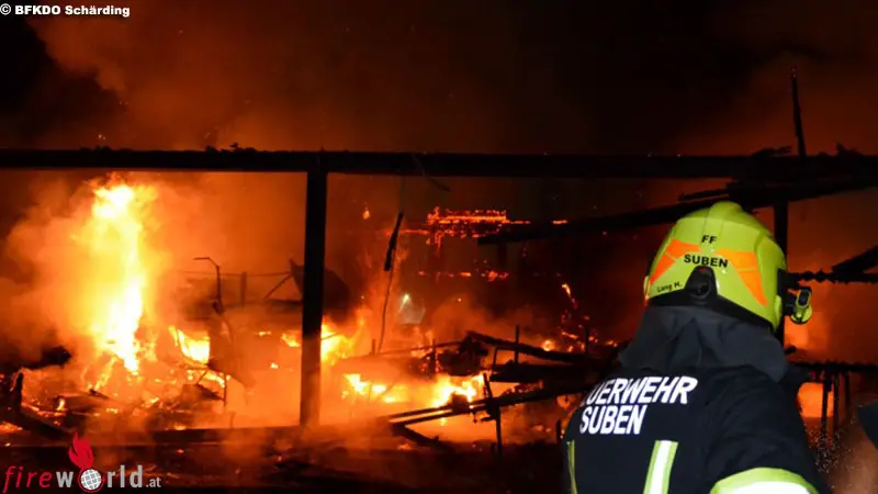 SUBEN (OÖ): Am Dienstag, 10. März 2020, wurden gegen Mitternacht die Freiwilligen Feuerwehren Suben und St. Florian am Inn zum Brand eines landwirtschaftlichen Objekts in die Ortschaft Roßbach (Gemeinde Suben) alarmiert.