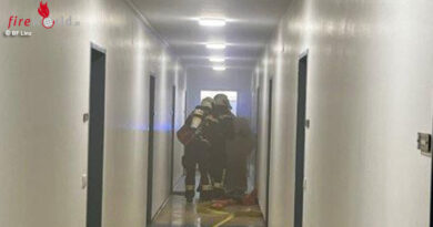 D: Flughafenlöschfahrzeug unterstützt Großbrand-Einsatz bei ehemaligem Geschäftshaus