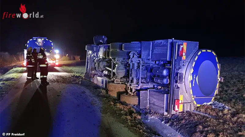 Dort angekommen wurde festgestellt, dass ein Milchtransporter von der Fahrbahn abkam und in den Straßengraben stürzte. Anschließend wurde ein Ersatztransporter angefordert, um die Milch aus dem verunglückten Transporter ab- bzw. umzupumpen.
