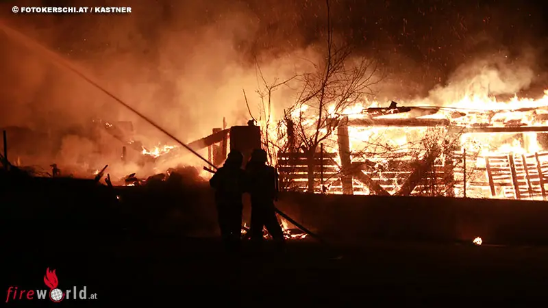 Oö: Nebengebäude in Herzogsdorf in Vollbrand