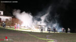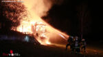 Gegen 03:30 Uhr geriet ein unmittelbar neben einem Wohnhaus stehendes Nebengebäude in Brand. Der im Haus schlafende Besitzer bemerkte das Feuer zunächst nicht – ein Autofahrer, der auf der nahe gelegenen B127 vorbeifuhr, alarmierte die Einsatzkräfte. Umgehend rückten vier Feuerwehren sowie Rettungsdienst und Polizei an, die bei der Anfahrt konnte bereits ein über zehn Kilometer leuchtender Feuerschein wahrnehmen konnten.
