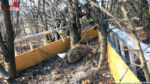 Bei Eintreffen der Feuerwehreinsatzkräfte (kleinere Einsatzeinheit) flüchtete zunächst einmal der Biber ins angrenzende Gestrüpp. Wie der Biber überhaupt dort hingelangte ist uns ein Rätzel, denn im nahen Umfeld befindet sich eigentlich kein Gewässer und der natürliche Lebensraum für so ein Wildtier ist über einen Kilometer von der Örtlichkeit entfernt. Da sich so ein Nagetier gar nicht so einfach einfangen lässt, musste zuerst einmal ein Plan geschmiedet werden.