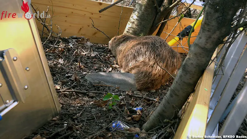 Man entschied den Bereich um den Biber mittels Holztafeln, Holzbrettern und Zuhilfenahme von zwei Steckleiterteile sowie weiterem Sicherungsmaterial, einzugrenzen. Erst nach einiger „Überzeugungskraft“ gelang es den Feuerwehrleuten den stattlichen „Mister Biber“, der sich zwischenzeitlich im Gestrüpp gemütlich gemacht hatte, in eine Transportkiste zu verfrachten. Anschließend wurde er im Augebiet Traiskirchen, direkt neben dem Schwechat-Fluss, wieder in seinen natürlichen Lebensraum unverletzt freigelassen.