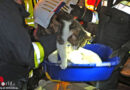 Eine Katzenrettung forderte ebenfalls zeitgleich den Einsatz unserer Drehleiter. Zwei Mann rückten in den Stadtteil Wollanig aus, um eine sehr ängstliche Hauskatze von einem rund 15 Meter hohen Baum zu retten. Glücklicherweise gelang die Rettung problemlos und „ELLA“ konnte den Besitzern übergeben werden.