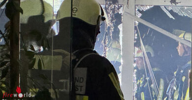 Zum Glück konnten bereits alle Handwerker das sich noch im Bau befindliche Mehrfamilienhaus verlassen. Der Brand breitete sich rasant über große Teile der Dachfläche aus und führte bereits nach kurzer Zeit zu einem Teileinsturz der Dachkonstruktion. Um die rasante Brandentwicklung sowie die erschwerten Löscharbeiten zu bewältigen, setzte die Feuerwehr drei Drehleitern, zwei Löschzüge sowie die Höhenretterstaffel ein. Teile des Dachbereichs wurden mit speziellen Motorsägen eröffnet. Verarbeitete Dämmmaterialien mussten von Hand entfernt und die darunter liegenden Glutnester abgelöscht werden. Diese Löschmaßnahmen waren sehr aufwendig und zeitintensiv und konnten nur unter vollem Einsatz der Brandschützer sichergestellt werden.