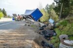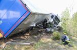 Aus bisher noch ungeklärter Ursache kam ein Lkw-Fahrer mit seinem beladenen Sattelschlepper, der sich auf der A2 zwischen Steinberg und Mooskirchen in Fahrrichtung Wien befand, rechts von der Fahrbahn ab, kollidierte mit einer Betonleitwand und kam nach mehr als 50 Meter über der Betonleitwand hängend zum Stillstand. Durch die Wucht des Aufpralls wurde die Fahrgastzelle stark beschädigt und der Dieseltank des Lkw aufgerissen.
