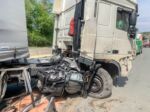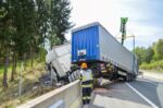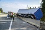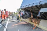 Stmk: Sattelzug kollidiert auf A 2 bei Mooskirchen mit Betonleitwand und sitzt auf ihr auf