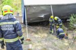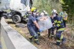 Der Lenker hatte großes Glück. Er konnte sich selbst befreien und wurde mit leichten Verletzungen vom Roten Kreuz in das UKH Graz gebracht. Die Einsatzkräfte der alarmierten Feuerwehren sicherten gemeinsam mit der Asfinag die Einsatzstelle großräumig ab. Da Brandgefahr durch ausfließende Betriebsmittel bestand, wurde parallel ein Brandschutz aufgebaut, ehe damit begonnen wurde den Sattelschlepper gegen eventuelles Wegrutschen oder Umkippen zu sichern.