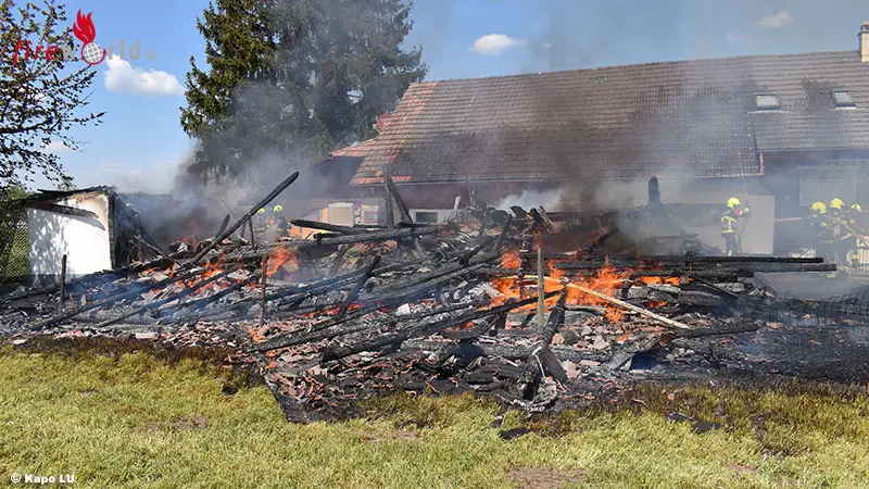 Schweiz: Stadel-Vollbrand in Buttisholz → Fw-Mann leicht verletzt