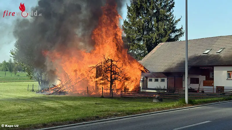 Schweiz: Stadel-Vollbrand in Buttisholz → Fw-Mann leicht verletzt